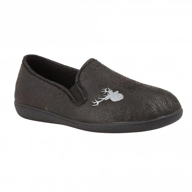 Focusing on comfort and wearability is the Lotus men’s Claude slipper. This traditional, full shoe, black slipper is crafted from faux leather and features an embroidered stag’s head on the upper. Practical features include discreet elasticated side panels helps to get them on/off with ease and a rubber outsole for enhanced durability. Comfort is also addressed by the incorporation of memory foam in-socks.