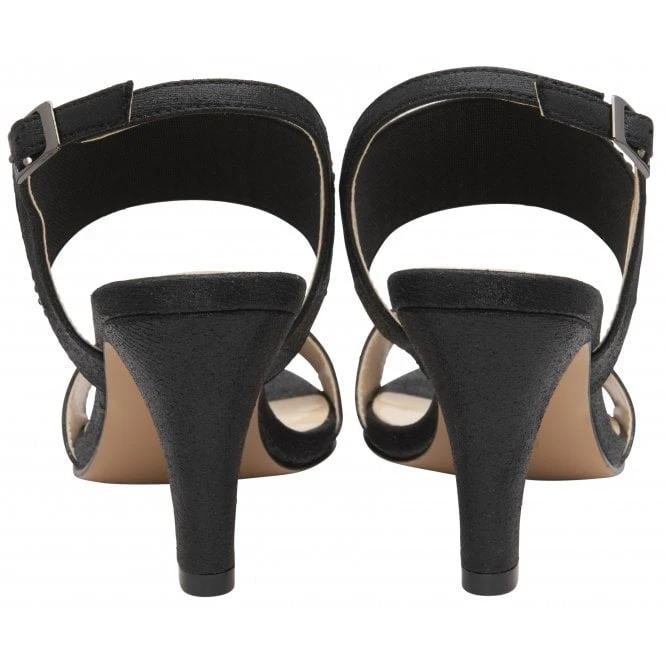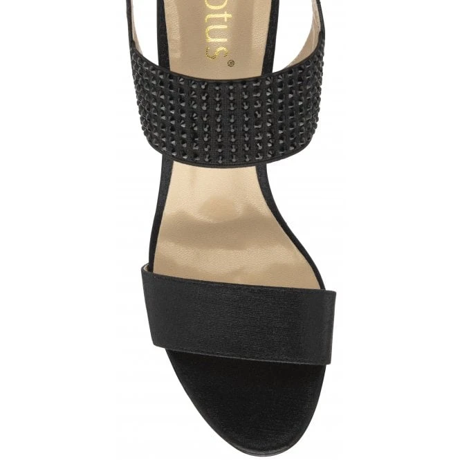 The glamorous Lotus Aurora sandal will stylishly see you through wedding season now, summer cocktail parties and festive soirees by the end of the year! Distinguished by the sparkling diamantes that are captured on the wide elasticated strap, this black open toe sandal is a head turner! Featuring an adjustable slingback for an enhanced fit and a wearable 8cm stiletto heel, this Lotus women’s sandal will complete any glamorous look especially when it’s paired with the Lotus Claire clutch bag.