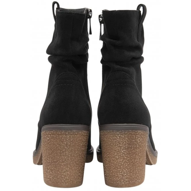 The Lotus Danica ankle boot is a true wardrobe must-have! This women’s black ankle boot encapsulates a soft, understated, suedette upper that has a relaxed vibe due to the subtle ruche detailing. This highly versatile Lotus women’s boot rests on a contrasting crepe platform and an on-trend 8cm block heel. We’ll be wearing this Lotus boot with skinny jeans, leggings or cute dresses this season and beyond.