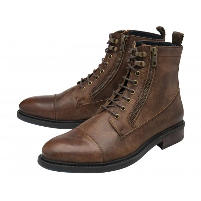 Bring together casual looks with the Lotus Harry ankle boot. This Lotus men’s brown leather boot is enhanced by a stitched toecap, an exposed zip and finished with eyelet and D-ring lacing. This new addition to the Lotus collection is a remarkable offering that promises endless amounts of wear.