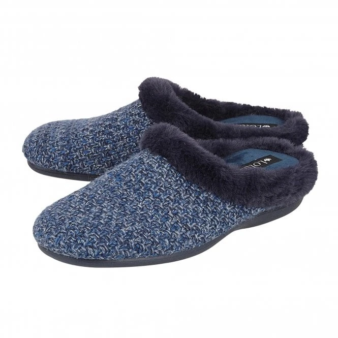 Incredibly comfortable and a delight to wear is the Lotus Ada slipper. Boasting memory foam in-socks to make this Lotus women’s navy slipper exceptionally comfortable, a rubber sole unit to improve durability and a multi-coloured textile knitted upper to add flair. What’s more, this feminine Lotus slipper encompasses a sumptuous navy faux fur collar to give extra warmth during the colder months.