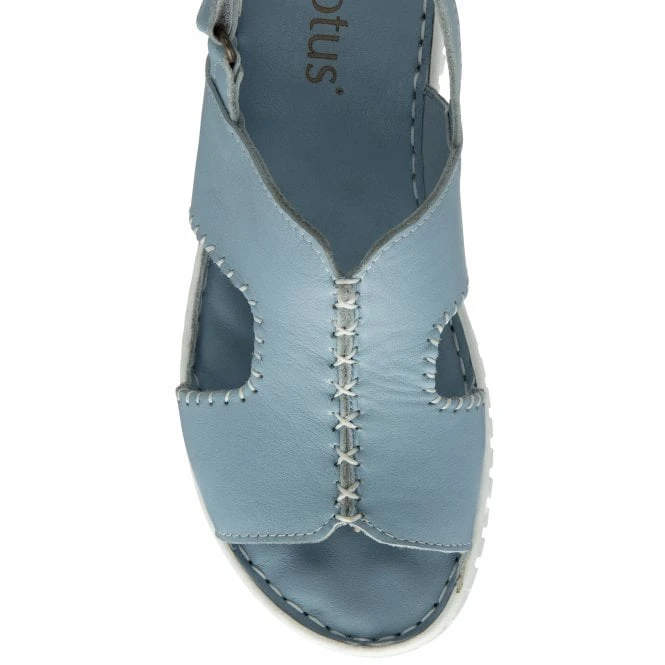 The Lotus Astrid open toe sandal is a delight to wear due to the comfort attributes that have been incorporated. This women’s pale blue sandal is crafted with an incredibly soft leather upper that is subtly enhanced by cut out panels that are finished with decorative blanket stitching. This almost flat Lotus sandal also boasts a leather lining, a cushioned footbed and an adjustable rip-tape slingback.