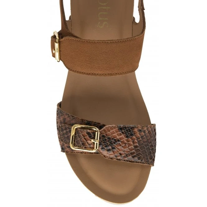 Add a playful twist to your summer looks with the Lotus Brynlee sandal. An eye-catching snake print has been captured on the toe strap, alongside an adjustable buckle to give this women’s open toe Lotus leather sandal a striking aesthetic. An adjustable fastening tan ankle strap, an on-trend serrated sole unit and a 6cm cork effect wedge heel have also been incorporated on this stunning summer essential style.