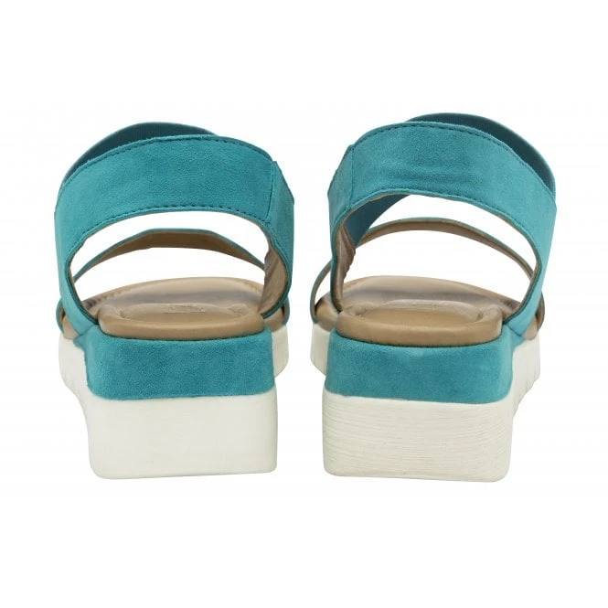 Inject a pop of colour to a wealth of look this summer with the Lotus Cecilla sandal. This striking open toe turquoise sandal features a toe strap and slingback crafted from suede and a wide elasticated strap that aids getting them on and off with ease. Nestled on a clean white 5cm wedge heel, this Lotus women’s sandal embraces this season’s trend for colour blocking.