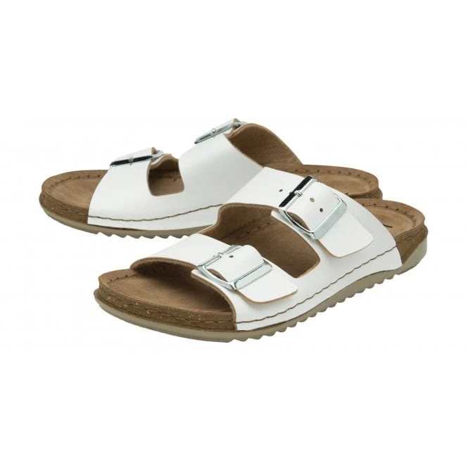 Downtime dressing calls for the Lotus Cortona mule. Double straps finished with an adjustable buckle fastening make up the upper of this almost flat, slip-on, white mule. This women’s summer essential sandal also features a leather insock for enhanced comfort.